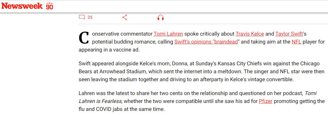 By now you probably know that Swift's boyfriend, a two-time Superbowl champ, was paid to promote COVID-19 vaccination.