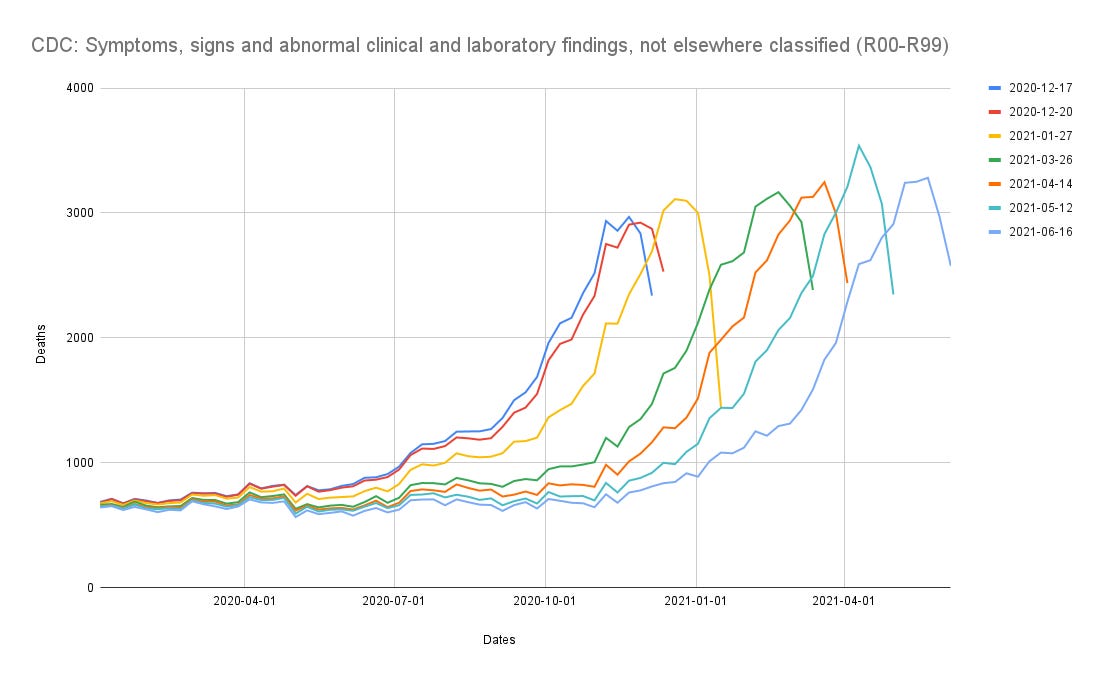 The R-codes in Mass. are stuffed full of (all cause mortality) R-codes, and this blog post by Austin G. Walters shows rising mortality totals among the R-codes: