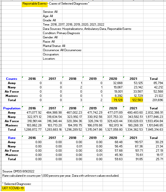 Understand, I'm not denying that people are injured or killed by the vaccines. That's a different issue. And it may very well be that a few thousand soldiers were made undeployable over the past couple of years due to the vaccines, but that's now how we get to hundreds of thousands of additional Reportable Events that clearly began prior to the vaccination campaign.
