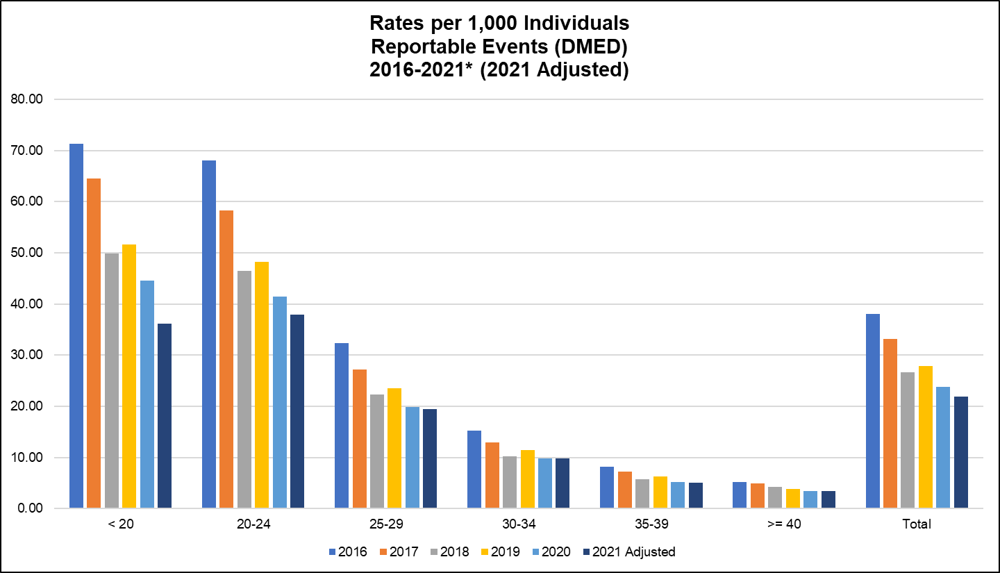 First, the [Dr. Long, Version 2] Reportable Events skyrocketed in 2020 after years of a declining trend. What made them triple? COVID-19 seems like the most obvious answer, but do the numbers match up?