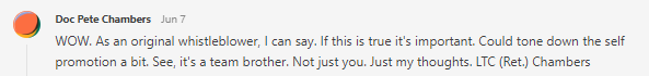 Dr. Chambers admonished my lack of team play and…my…self promotion.