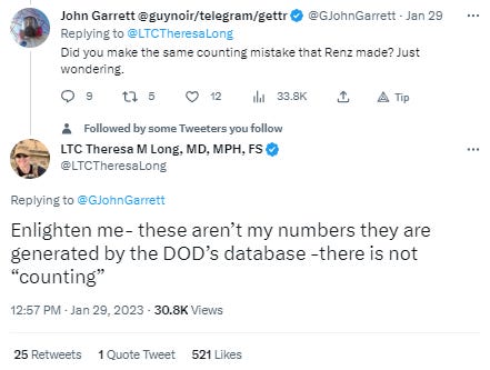 With high certainty, I can say that few if any of these reportable events are vaccine injuries. Maybe a tiny number of them are, but they are almost entirely COVID-19 cases. What the military calls a reportable event is an extremely narrow list of a few dozen ICD-10 codes, and COVID-19 was added to that list. Dr. Long's latest data simply shows what appears to be an alarming increase in scary events is just a matter of adding COVID-19 positive tests to the reportable events category.