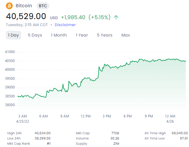 Bitcoin got a price bump on the back of the news of Elon's purchase.