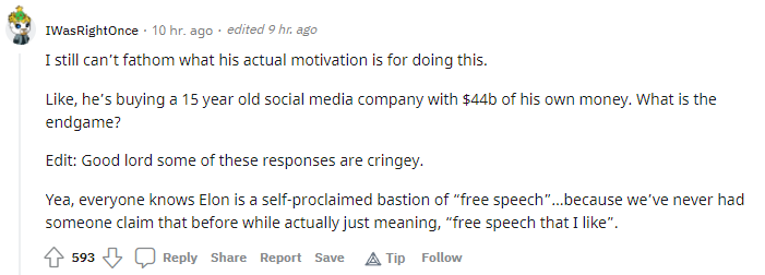 There is a substantial list of reasons why it's easier for Elon to purchase Twitter than for other billionaires, aside from the fact that few billionaires have $44 billion on hand or credit. So, global politics aside, we might just chalk this up as a shrewd business investment. I mean…we should give Elon some credit for knowing how and where money can be made, right?