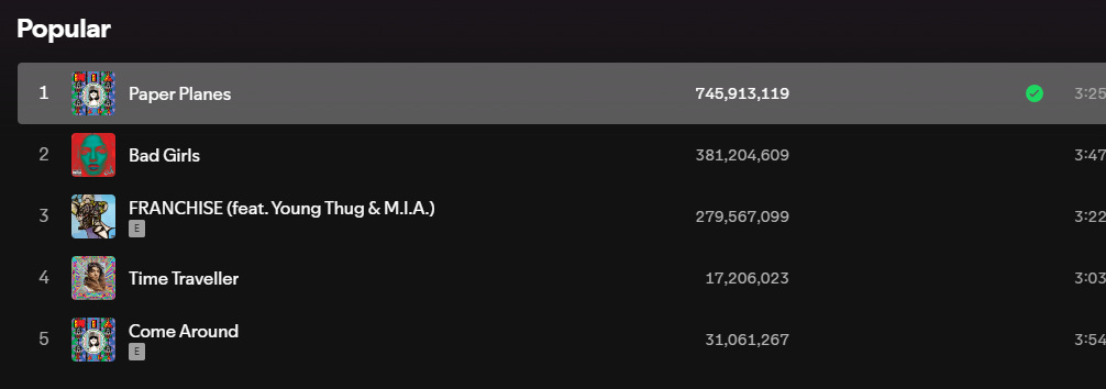 Maya explains the title "Paper Planes" in terms of paper visa documents bringing immigrants into the U.S. in a way that would be equivalent to taking down the towers as happened on 9/11. That would be a little less aggressively creepy were we not in the midst of a stunningly engineered mass immigration issue that has pushed American partisans to the brink in a way that has talks of civil war or secession looking more realistic than ever in our lifetimes. Also…