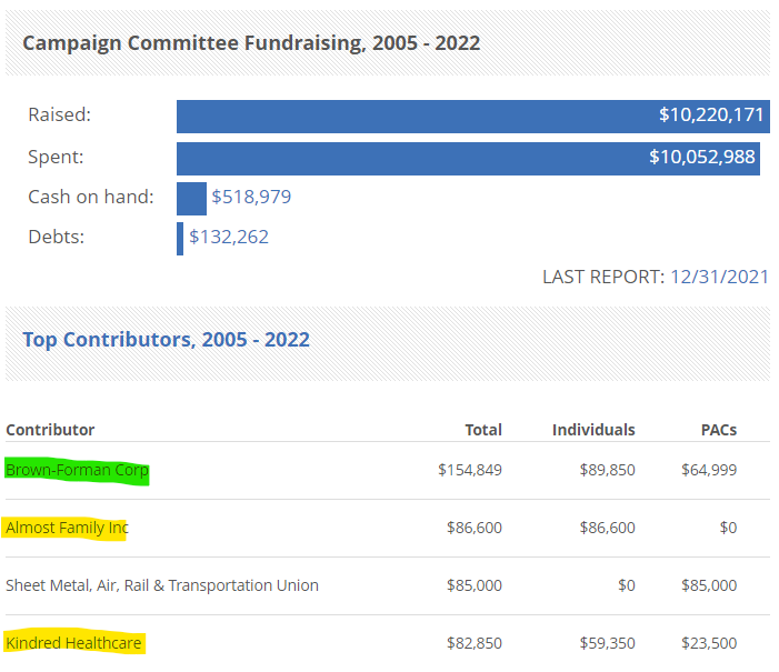 Yarmuth is a veteran member of Congress whose 17-year campaign fund-raising reached 8-figures.
