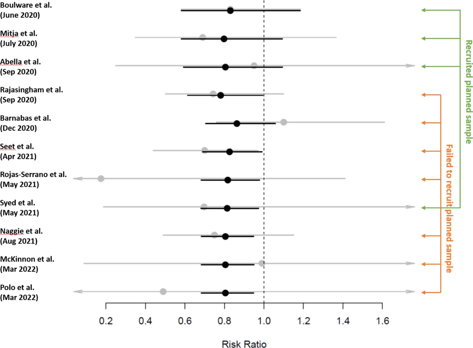 The authors of the Harvard meta-analysis note that the inappropriate declaration of negative experimental conclusions resulted in poor recruiting in further trials (which anyone paying attention either already knows, or knows that it was an excuse to discontinue, for instance, the NIH and Duke trials).