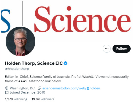 To be clear: Holden Thorp isn't just some guy with an opinion on the internet. He is the Editor-in-Chief of Science, and a former provost at my old university, which was the hub of the Human Genome Project. He was also the chancellor at the University of North Carolina at Chapel Hill, where Ralph Baric does his thing.