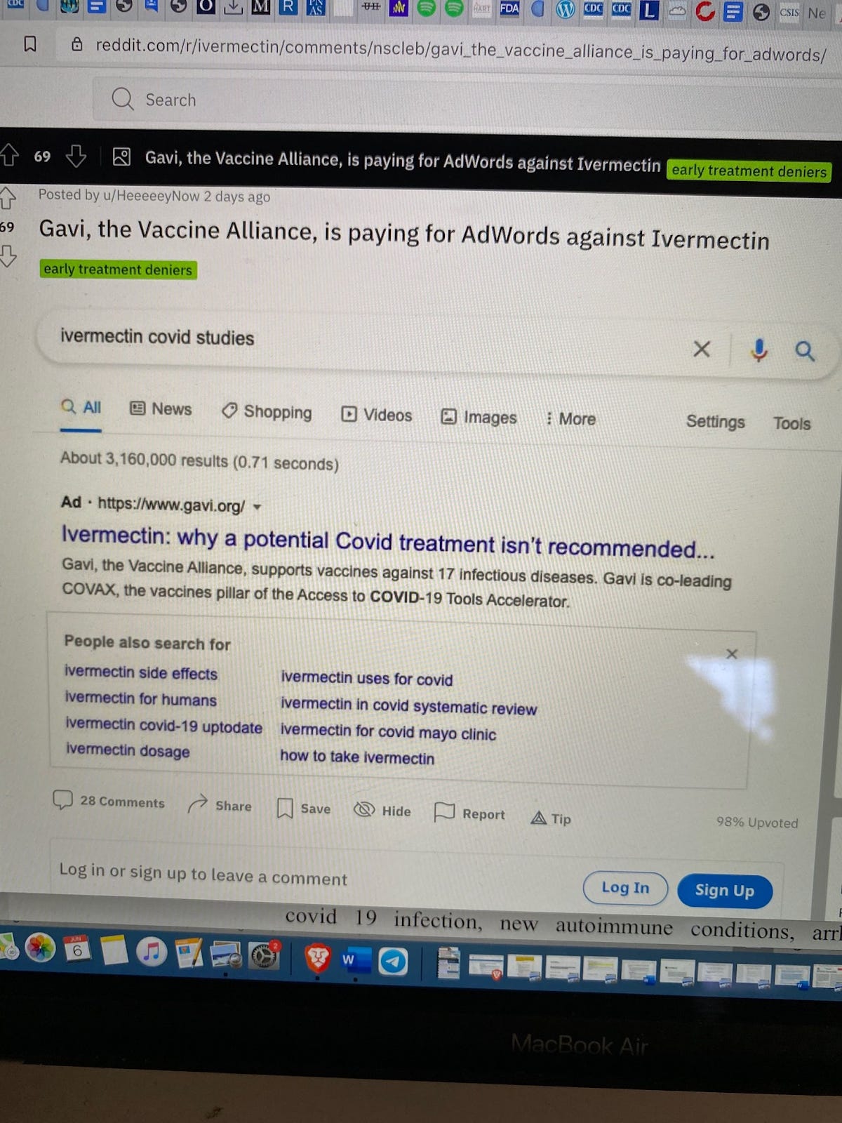 Now, GAVI, which stands for...Gates...Vaccine...something-or-other...it's "the vaccine alliance", which is all friendly and cuddly sounding...is running ads to convince people that all this evidence of ivermectin's efficacy in treating COVID-19 is meaningless, or at least "not recommended" (by WHOm?).