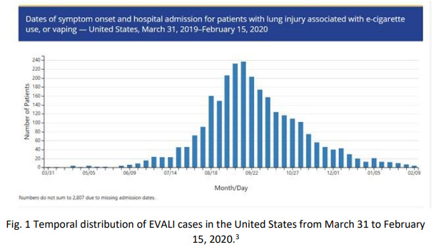 A number of people died of EVALI in 2019, and in fact, the hospital admission curve looks like an ordinary viral infection curve, which is not what you expect of an inhalation product, and is off-season for English boarding schools: