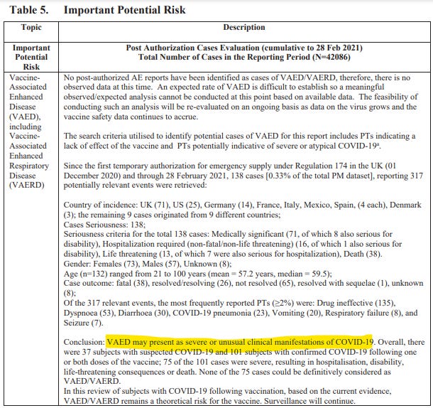 I am inclined for the moment to take as face-value the lack of detection of VAED as my opinion has veered further and further toward the belief that these injectable products simply don't interact much with the virus in most individuals (perhaps in the immunocompromised who can carry the virus for months, we see evolutionary pressures that may lead to variants of interest).