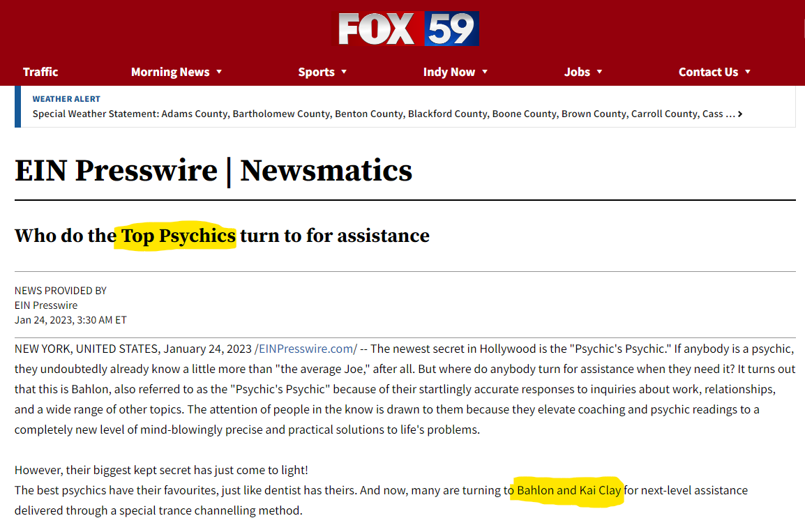 The "Psychic's Psychic" moniker originated with this December 2022 article in LA Weekly that similarly looks like an advertisement, and seems to be Clay's only promotional pat on the back [before now?].