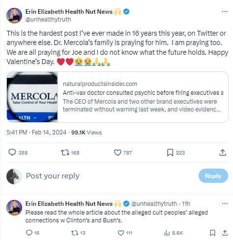 Let's dig into the article posted by Erin Elizabeth, who is [edit: not married; misunderstood Wikipedia] romantic partner to Joseph Mercola: