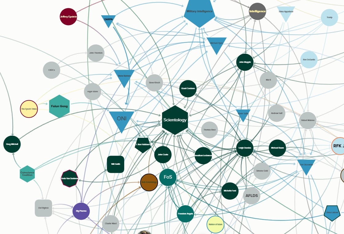 This is the easiest example, and I plan to write one or more articles about QAnon because there is startling overlap between the QAnon control nodes and the Plandemonium control nodes.