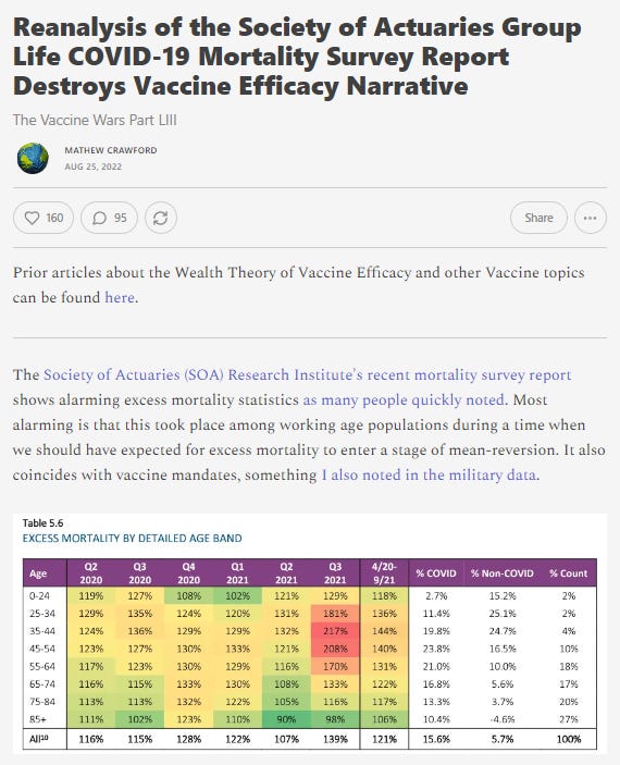 I was glad to have the opportunity to speak with Michael Nevradakis at CHD earlier this week. I'd felt as though my reanalysis from last year of the Society of Actuaries data and their dubious claim of vaccine effectiveness (VE) in their data was overlooked. It's hard to be responsible for what feels like a hundred stories and analyses while the information avalanche follows the influencers.