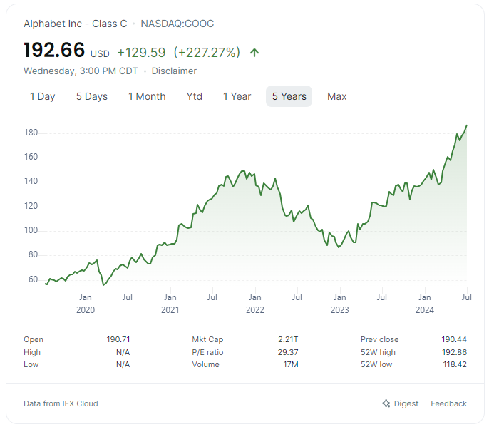One way or another, GOOG outperformed the broader markets over the past five years.