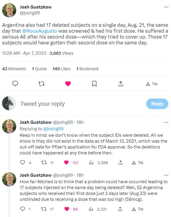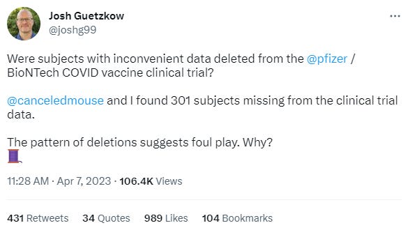 Thanks as well for the disappeared Facebook post; we opened this Substack spree a month & a half ago by reminding you raised early awareness on this exclusion shocker (https://openvaet.substack.com/p/pfizerbiontech-c4591001-trial-a-deeper) which should have been sufficient to trigger an audit - but it'll be better with the Facebook post - edited to link here.