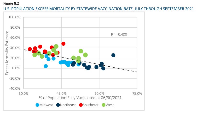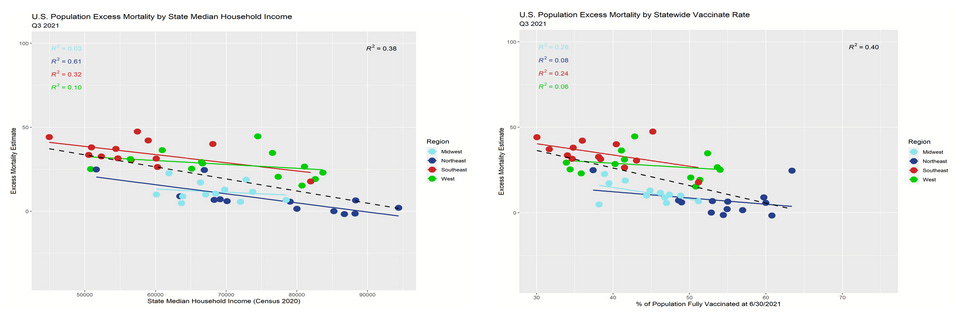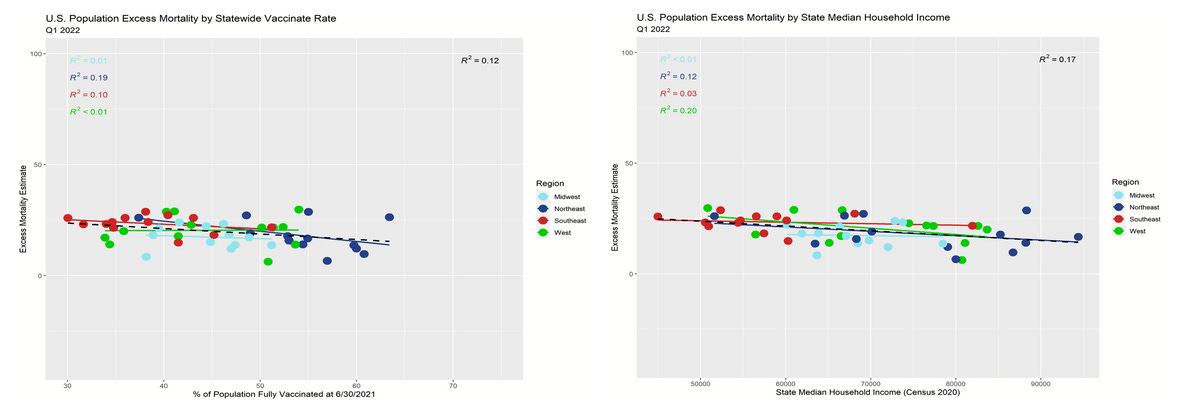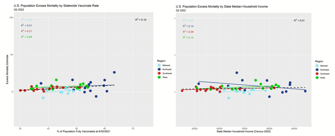 There is no reason left to suggest any of the excess mortality data trend is driven by vaccination, but every reason to think that it's almost entirely driven by the health effects associated with wealth. The SOA actuaries performed none of this analysis before making a video saying that the aggregate state data trend line demonstrated a meaningful signal of vaccine efficacy.