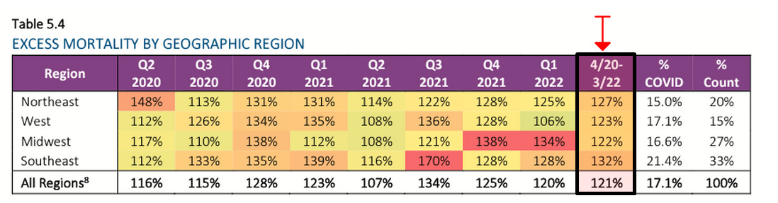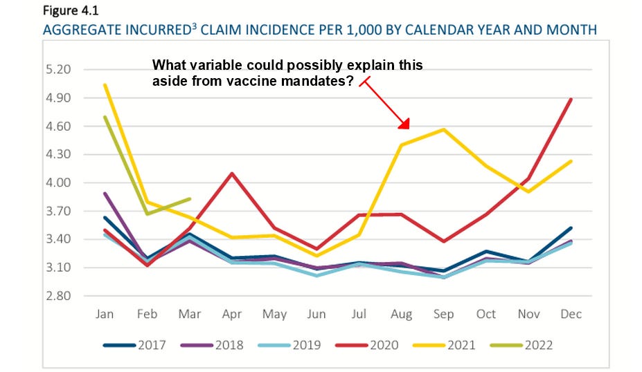 The Society of Actuaries (SOA) Research Institute's recent mortality survey report shows alarming excess mortality statistics as many people quickly noted. Most alarming is that this took place among working age populations during a time when we should have expected for excess mortality to enter a stage of mean-reversion. It also coincides with vaccine mandates, something I also noted in the military data.