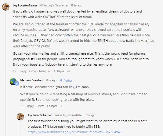 2. Aggressive tweeters are the worst. Especially when they've no idea of how you have been working hard to out the numbers and manipulation of data. However, after the way the data has been manipulated and hidden in cases, how can we know with certainty PCR cycles were not manipulated too? Anecdotally, we've heard nurses claim that the charts for people coming to ER were marked as UV at the top if the record of injection was not associated with that same health system. Nurses claimed when flipping through the file, often the opposite was true. Likewise, anecdotal reports have surfaced of treatment protocols being varied for un-injected vs injected. Anecdotal, I know, and that is not the way of data, but I would not put anything past those incentivized to push their injections and deaths for money. Similar to the climate "emergency" they will do whatever it takes to fool those who are too busy, lazy, trusting or frightened to look beyond the headlines.