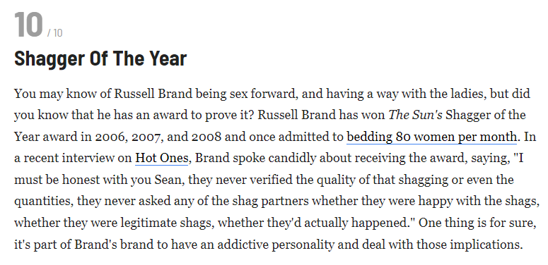 Did I say "third-party"? One of them is a friend of Russell's who depends on work as a comedian, and shares Piers Morgan's expressed opinion that Russell Brand has always and in all ways been a perfect gentleman along his spiritual path of shagging enumerable women. Is anyone else slightly creeped out by the combination of the calm way in which she talks about her own rape, along with her unquestioningly and complete exoneration of Russell? Something just seems strangely unnatural about her.