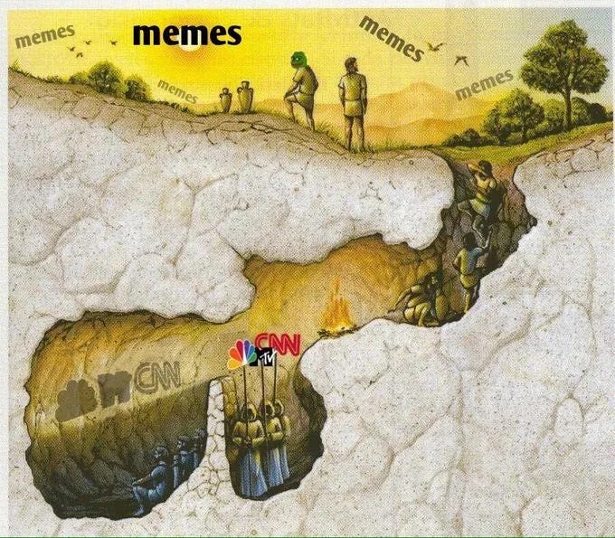 I'm not saying that's what government has to be, but getting back to something more liberating of the human spirit will be a monumental enterprise. In the meantime, maybe we should all hole up in the same cave at once. We can call it "Rumble's Cave". Or is the risk that it turns into Plato's Alternative Cave? Would we even know if the government were to tell Rumble how to weight its algorithms with a secret intelligence-level order?
