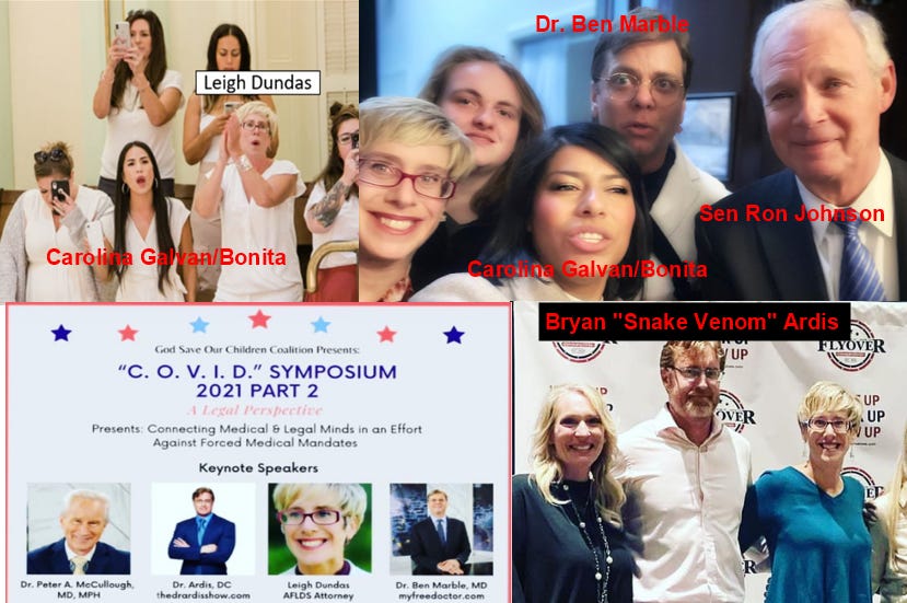Dundas has been a frequent speaker with both Dr. Marble and also Dr. Bryan Ardis whose undiscussed-with-serious-people's snake venom theory was blasted out as a documentary by Peters. She also associates with Patrician Rodriguez a.k.a. Carolina Galvan a.k.a. Carolina Bonita whom the lead truckers from the Freedom Convoy kicked out due to suspected sabotage.