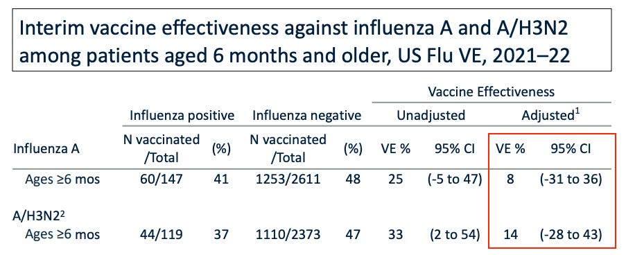 The CDC does provide several paragraphs suggesting that VE is variable for different influenza strains, which might be a great way to deflect the occasional study that fails to demonstrate effectiveness during any given season.