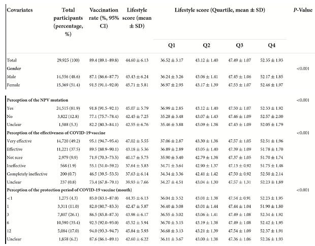 Understand that though the HUB is hard to quantify, there is at least a bit of research out of China (Miao et al, 2022) in which authors used lifestyle scores finding that higher lifestyle scores correlated heavily with positive perceptions of COVID-19 vaccines, with other variables making very little difference.