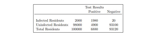 Experienced data handlers and statisticians who know how to apply Bayes' Theorem can work the problem out in a few seconds. However, we begin with a breakdown of all the categories of testing results.