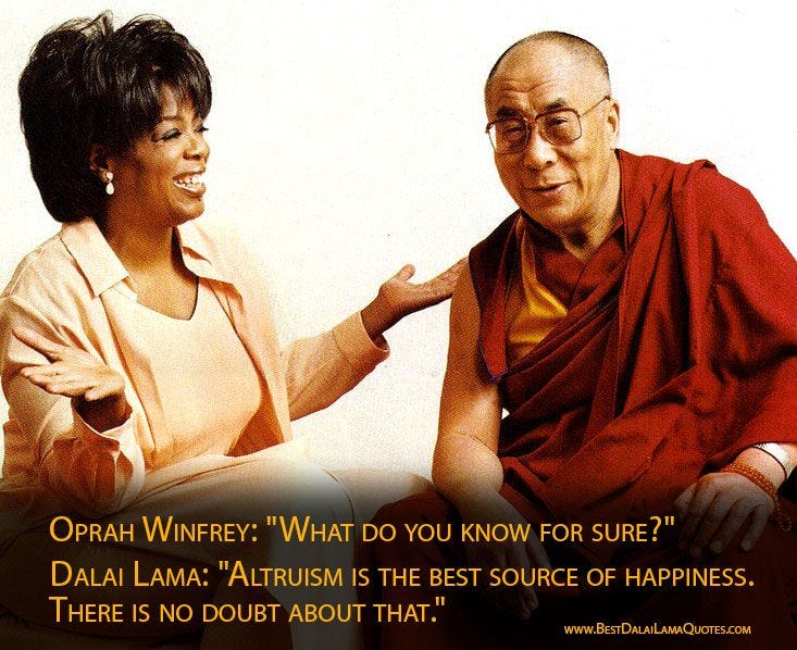 Calm down, mysterious voice. I will leave it to each reader to make these calls. And I'll ignore Oprah for now while I lay out some interesting facts that most people might not know about Tibet, the Dalai Lama, and the Lamaist religion.