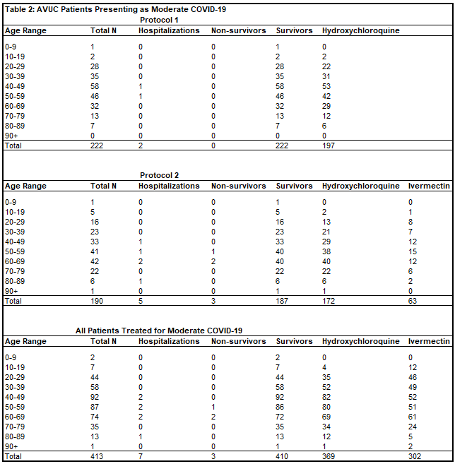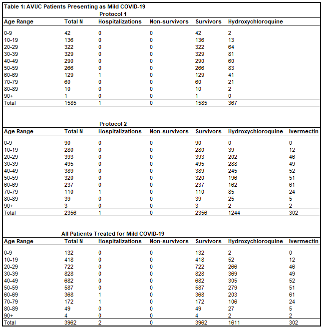 Doctors at All Valley Urgent Care (AVUC)—as well as others in the U.S. and around the world—used hydroxychloroquine within outpatient treatment protocols, providing the rationale for treatments examined in this paper. Later, ivermectin was added as a nearly uniformly positive body of evidence of its apparent efficacy was reported.8 Still, there is a vast pool of often uncollected or unpublished data regarding these treatments (personal correspondences).