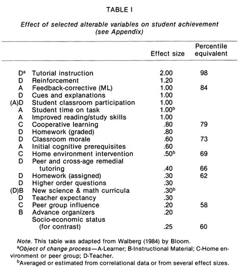 Having helped build and run three schools, I have my own stories about making use of Bloom's observations (which I hadn't read until after I was into the third school, but understood intuitively having taught classes since I was 13). But I'll save those for another time.