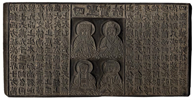 History is full of examples of changing tides of power among civilizations and kingdoms according to relative symmetries of technological advancements. In each case, the conditions are important in understanding the process. Wood block printing appeared no later than the 4th century in China, the first book in the 9th century, and moveable type by the 11th. Around 1440, Gutenberg's printing press appeared in Germany. Large scale printing raised literacy following these developments in both China and Europe.