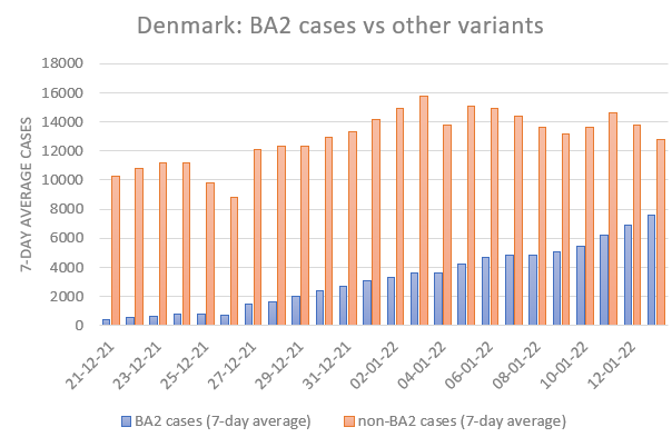 If you haven't yet heard, there is a second omicron strain. The cool kids are labeling the two strains BA.1 and BA.2, which any Cobra Kai could tell you stands for "bad ass 1" and "bad ass 2". I'm going to tack these onto my preferred SCO label: SCO.BA.1 and SCO.BA.2. Hopefully that will be clear as we move forward, but I may just refer to omicron in some instances that may or may not involve a clear grouping. Understand that there is sometimes not enough clarity in the information streams to distinguish between those situations, much less the two strains.