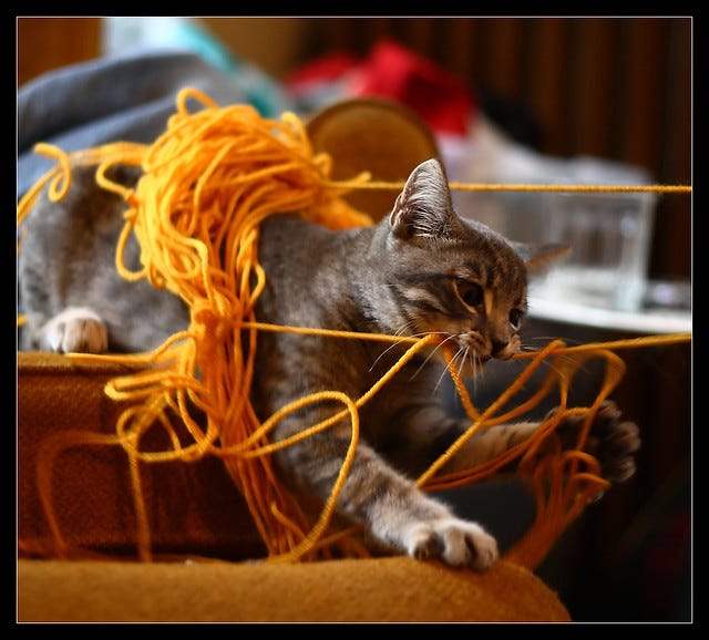 Even the bad cat hasn't unpuzzled the yarn quite yet.