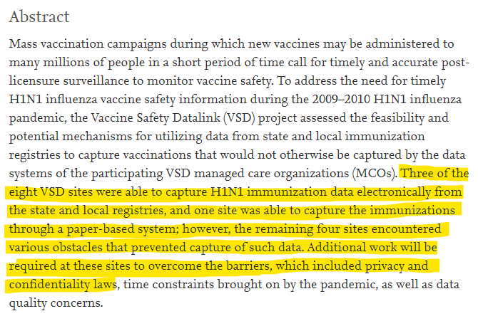 We should also wonder whether or not the people running the VSD and using it are aware of the misleading statistics generated by the VSD system. They should be. Responsible researchers have previously lamented a lack of state and local surveillance programs (McCarthy et al, 2011) needed to formulate more complete data sets that would increase N (sample/patient sizes) in papers in which the HUB goes uncorrected.