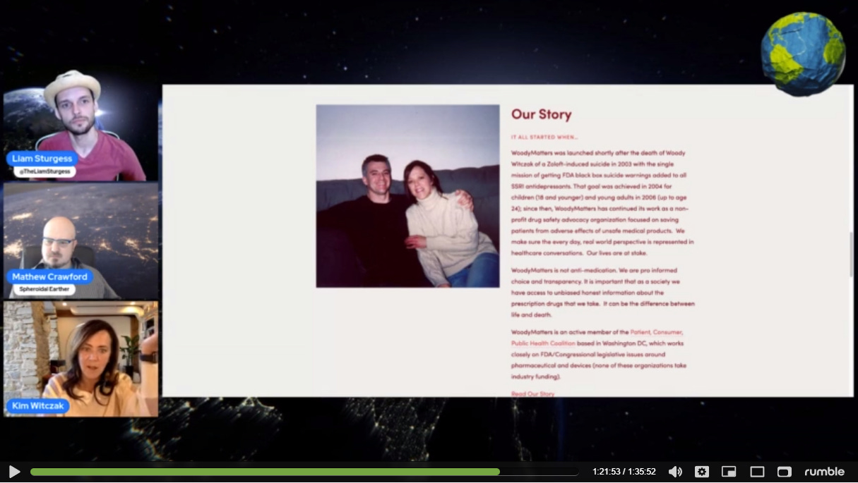Three weeks ago, Liam Sturgess and I had the good fortune to host Kim Witczak, the "Accidental Advocate". Though Kim's story begins with a tragic event–the suicide of her otherwise happy and healthy husband soon after he began a course of zoloft, prescribed to him when he suffered insomnia associated with a new job, our conversation with her felt joyful because she turned her personal tragedy into a meaningful mission.