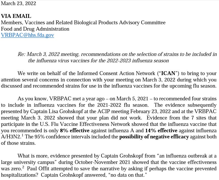 Addendum: Robin Whittle, who writes at Nutrition Matters, provides additional evidence that influenza vaccines fail to demonstrate efficacy here and here.