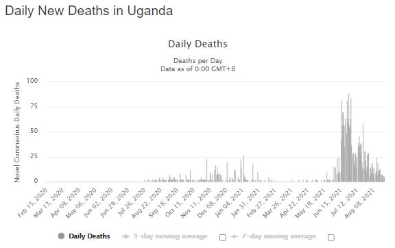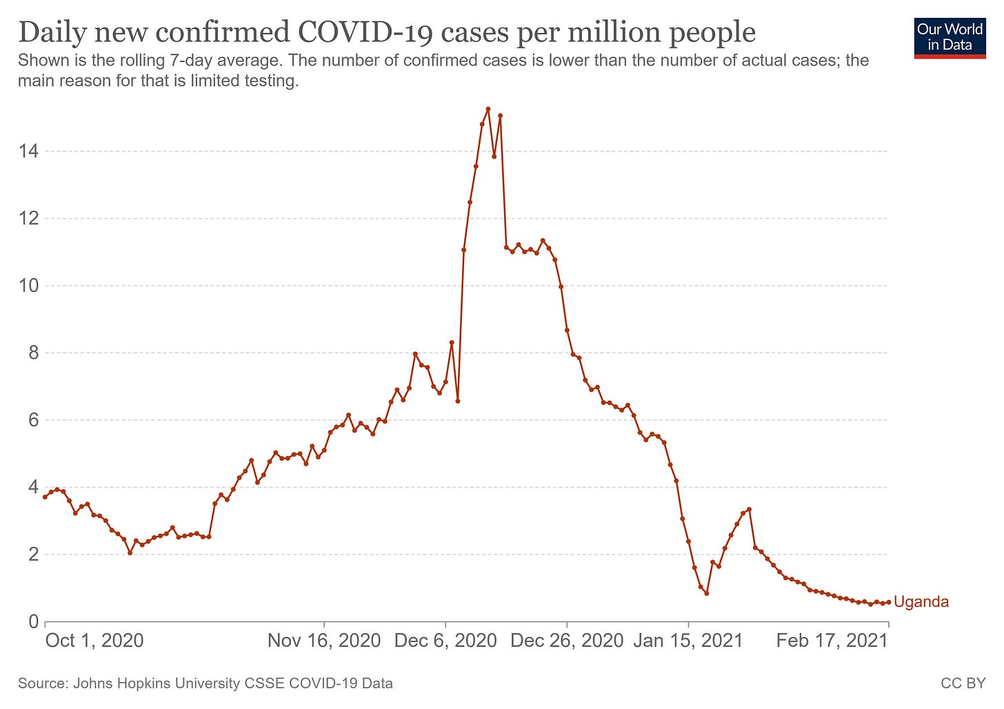 In mid-October, the Daily Monitor declared, "New drug to curb rising COVID-19 deaths," as the expensive remdesivir got approved for treatment in Uganda. It sometimes seems strange how media outlets believe they know the results before they happen. However, Uganda saw cases and deaths climb for weeks afterward.
