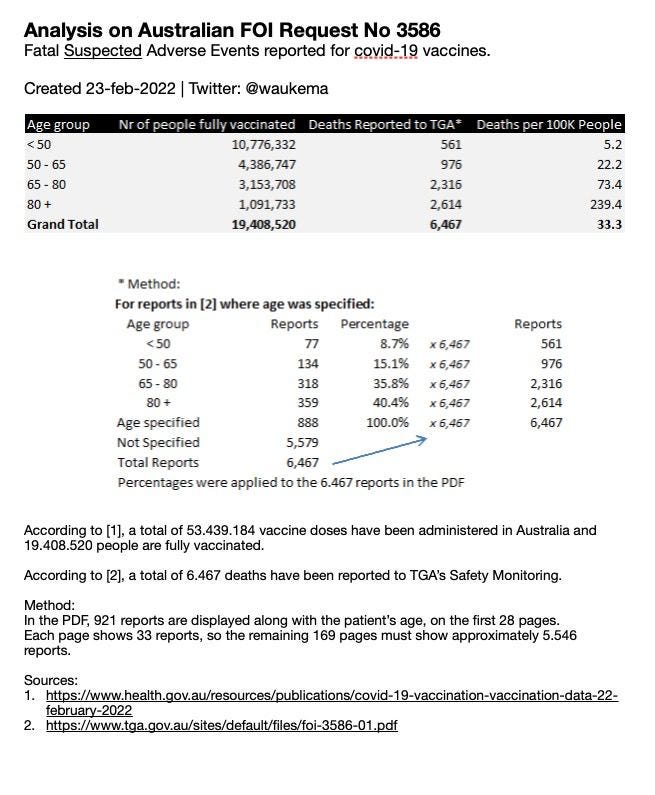 Addendum 2: Steve Kirsch just informed me that our mutual friend Wouter Akema, who previously set the record for having a publication showing a poor mortality risk-benefit analysis retracted against the authors’ wishes in something like 2 or 3 days, just observed a similar recorded death rate in Australia, only a little over 10% under the German report. This makes sense given that not all deaths are likely to be reported, so the Australia numbers would be expected to be an undercount.