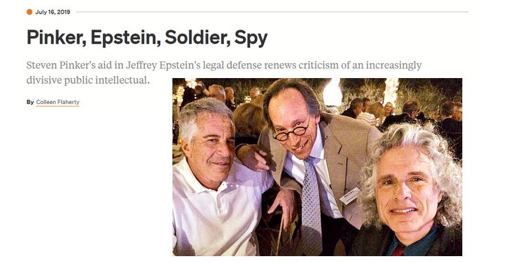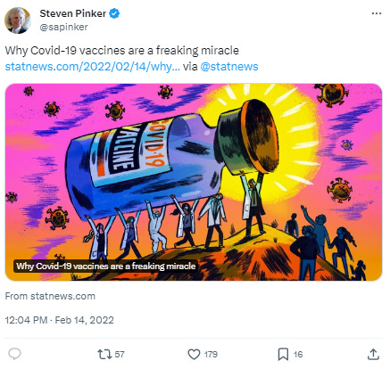 Harvard Psychology Professor Steven Pinker was grouped into the IDW shortly after he stopped coloring his hair (with kool-aid, I think). Pinker promoted the experimental quasi-vaccines as a "miracle":