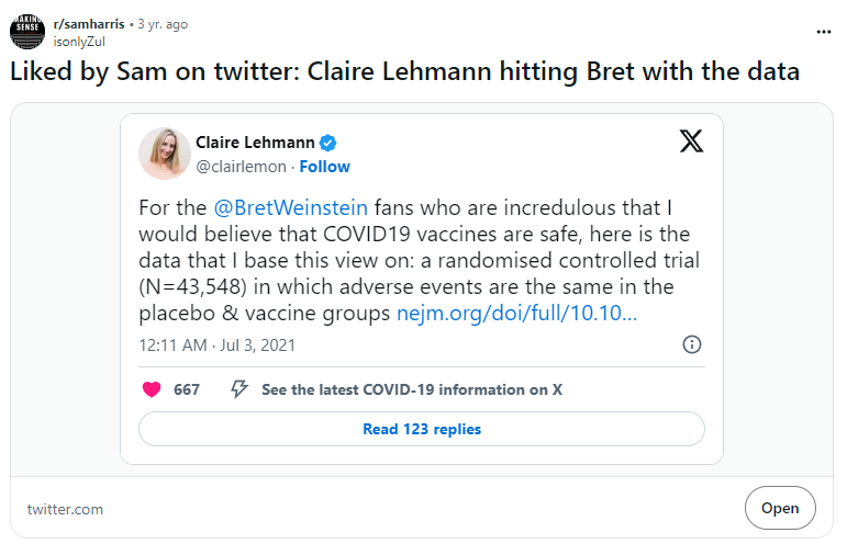Lehmann clearly does not know much about science. At all. That's fine---plenty of people do not, and it's not required that all of humanity does. But it is startling how confidently she asserts authoritative opinions on the topic that read like total nonsense. Sadly, she seems to be influencing the following she gathered by hitching a ride onto the heterodoxy movement. Except that she doesn't find much value in heterodoxy with respect to mass human experimentation, and doesn't recognize that labeling over public health is no different than other aspects of identity.