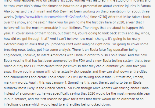 An RTE reader pointed out to me that on January 1, 2020, Mike Adams made an interesting appearance on InfoWars with his friend Alex Jones.