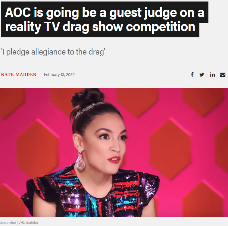 It might be time to consider the possibility that AOC's election and purpose in Congress are staged like reality TV. Can we just hold that hypothesis open? Or is there some…emotional nudge…of the charge of "conspiracy theory"...holding us back? Because mixing serious politics and reality TV is entirely crazy, right?