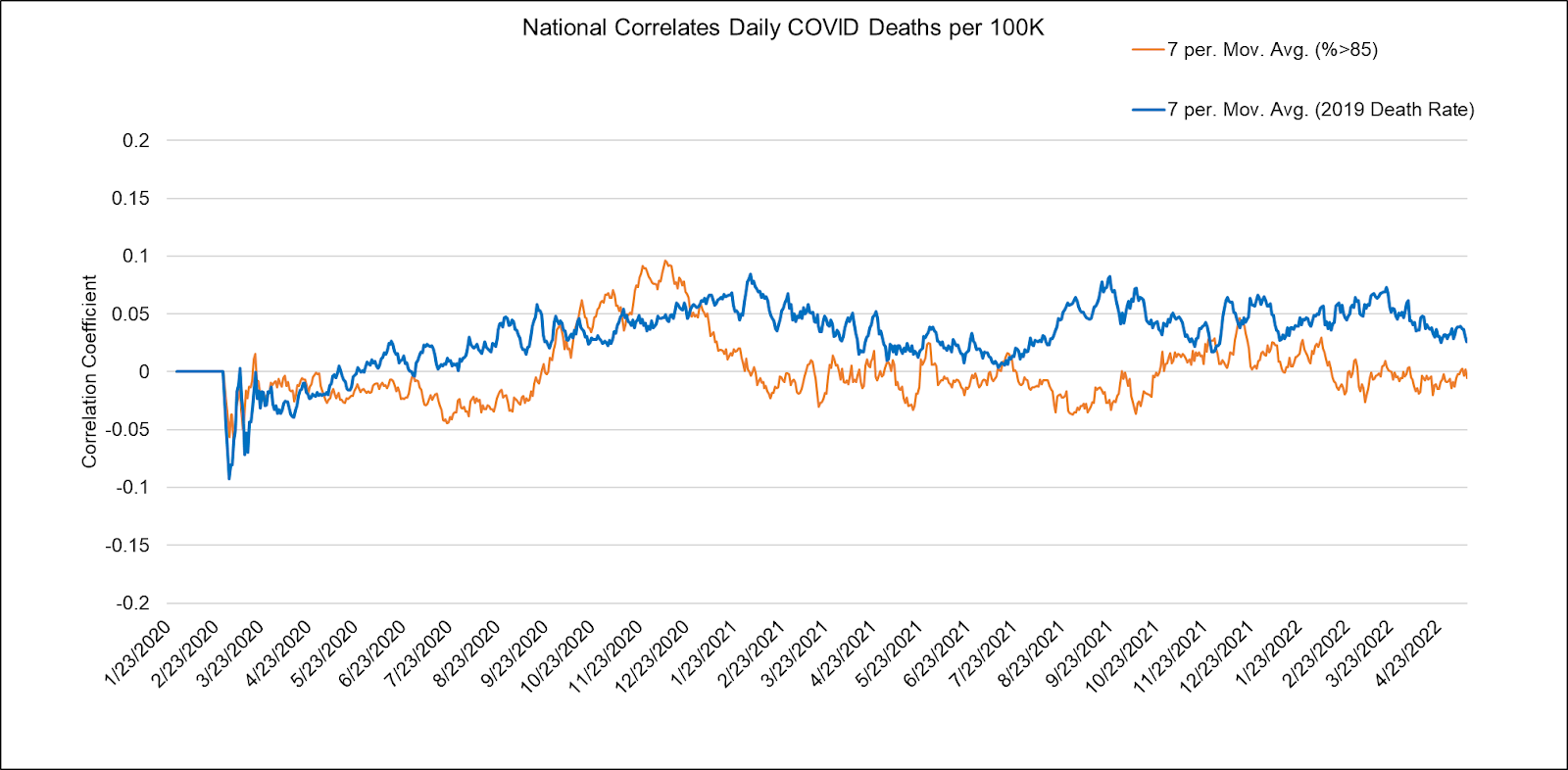 For the purpose of this article, all correlations are with respect to COVID-19 deaths.
