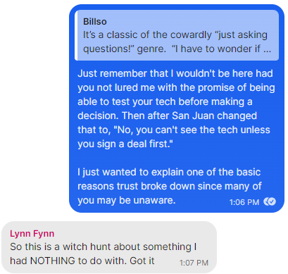 Lynn is one of many reasons why I no longer reach out to that particular circle much at all, though she certainly wasn't the first. Numerous times while I have sought answers, she has claimed proof/evidence/labor that she would share with me, but each time that promise turned into vapor, wasting hours of my time. But that's three or four of several dozen stories where I did reach out for communication, and the result was anything from dismissal to quite nasty. While there are some people in that circle whom I have relatively good feelings about, and trust with, I've found startling silence over what I consider fundamental issues of decency at times. I will explain that more in a future article. But the only reason I was ever around that circle was that I was lied to about the premise of my participation in the San Juan Summit.