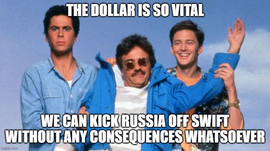 My reason (aside from the deep pool Substack money) for jumping into the fray during the plandemonium is that I felt certain that the repo market collapse and subsequent propping on Sep 17, 2019 represented a discontinuity of trust among large banks indicating a major world event. I've been writing about the upcoming collapse of the dollar since the early days of LiveJournal in 2000, and it was clear to me that the patchwork solutions in the wake of the mortgage bond crisis were a Weekend at Bernie's solution.