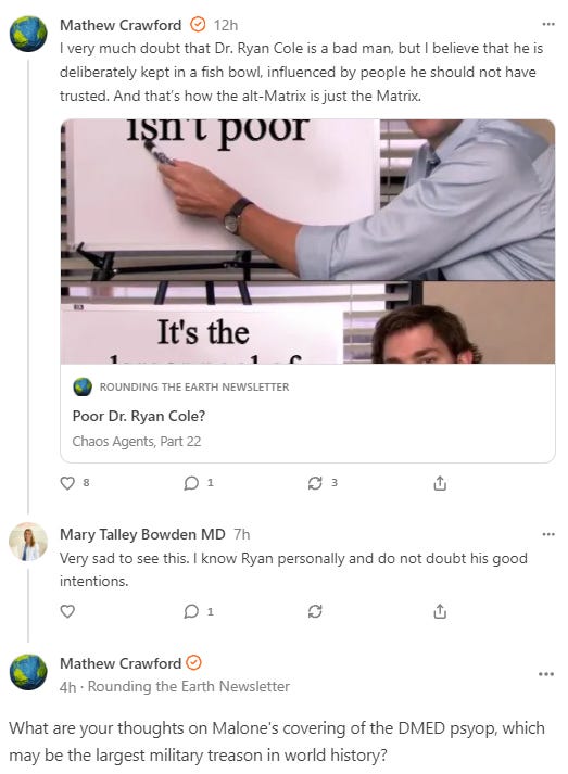 Over time, I did begin to care more about credit for the work I've done. But that's not about the money. It's about the fact that around the time I refused pressure to back down from the truth about the military health database (DMED), I felt a sudden and I believe coordinated chill from the MFM influencers. Link-ins to articles I wrote dropped around 95% in two days, and never returned while the false DMED story was blasted out nonstop. And that's when I began to look around and feel more and more certain that the environment doesn't have just a bit of controlled opposition here and there. The larger community is almost completely controlled.