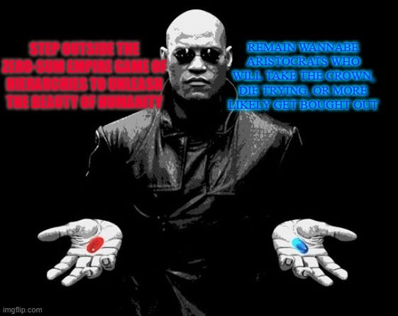 Having spent three years and change communicating with many circles in the MFM, what I largely see is an artificially (intentionally) splintered (and alt-bubbled), but hierarchical and closed off clusters that more often strike me as led by wannabe aristocrats than humble servants of humanity. There is too much focus on the whiteness of coats, diplomas, titles, Nobel Prizes, and all the other symbols of an elite class that you should choose to rule over you rather than the other elite class. Because there is no way that ends in disaster in another few years. (And most of them still aren't aware that they're using incorrect and meaningless math to fight slightly more incorrect and meaningless math, and I don't have the time to fix it all.)
